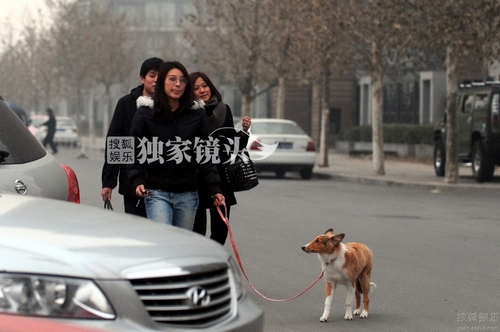 郭晶晶摆脱“悔婚”传言 返京轻松遛狗