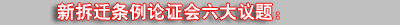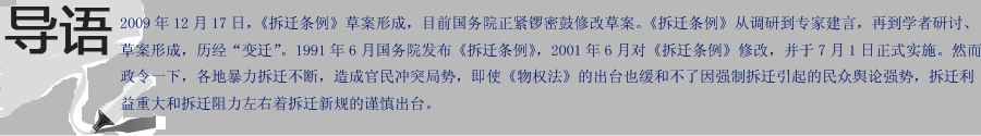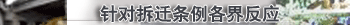 提请审查《拆迁条例》建议书的北京大学教授沈岿说:“我们今天也讨论过条例的名称问题,可以肯定的是,征收、补偿这些都会考虑进去,但拆迁是否也要加进去,还存在争议,有的专家认为‘拆迁’这两个字要在条例名称里永久删除。”