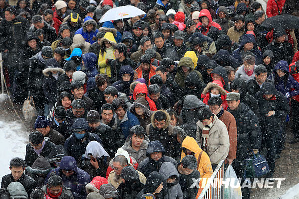 1月3日上午,乘客在北京站前排队等候进入地铁站。当日北京降雪。据气象部门预报,降雪将持续一整天,雪量将达到大雪级别。气温也将大幅下降。新华社记者邢广利摄 |