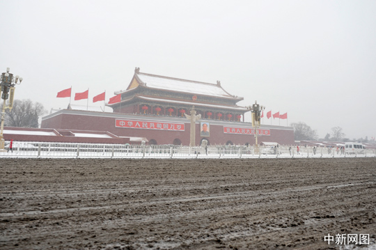 图为白雪覆盖下的天安门城楼。中新网记者 金硕 摄 |