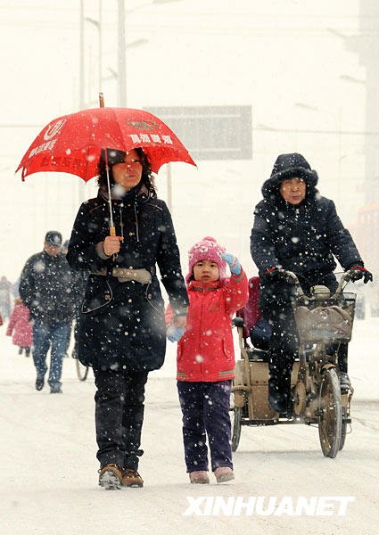 1月3日,石家庄市民冒雪出行。从2日夜间开始,河北省大部分地区出现降雪天气。新华社记者巩志宏摄