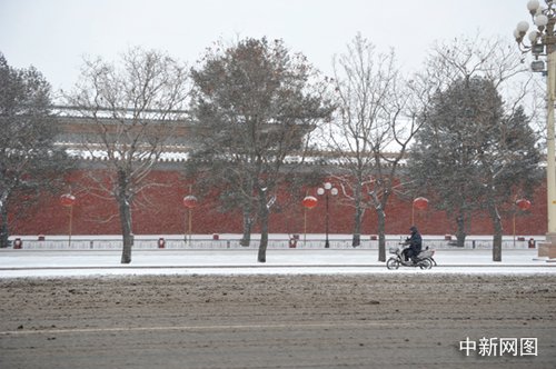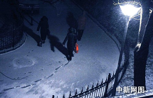 1月3日子夜时分,北京开始降下新年第二场雪,风雪夜归人踏出第一行脚印冒着严寒回家。 中新网发 贾国荣 摄