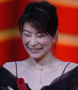 郭晶晶出席节目中的开心一笑。露肩的晚装配上优雅成熟的盘发,发型的刘海与后部头发有明显的分界线,此款盘发成熟度飙升。