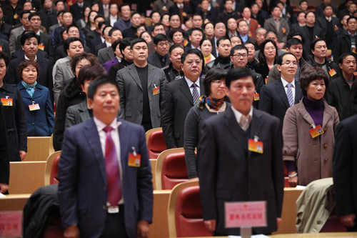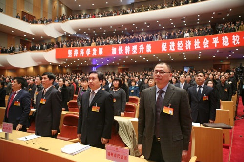 今天上午,浙江省十一届人大三次会议在浙江省人民大会堂隆重开幕。图为大会现场。