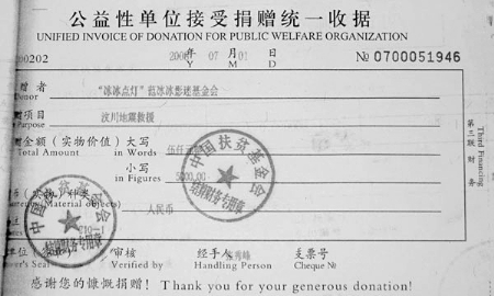 范冰冰的捐款收据