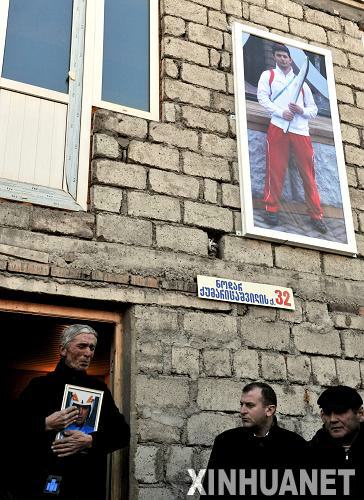 2月20日,诺达尔的父亲大卫·库马里塔什威利(左)手捧儿子的照片从家中走出。当日,格鲁吉亚雪橇运动员诺达尔·库马里塔什威利的葬礼在他的家乡巴库里亚尼举行。两周前,诺达尔作为格鲁吉亚代表团的一员出战温哥华冬奥会。2月12日,年仅21岁的诺达尔在进行雪橇训练时发生恶性碰撞事故,不幸身亡。 新华社记者刘力航摄