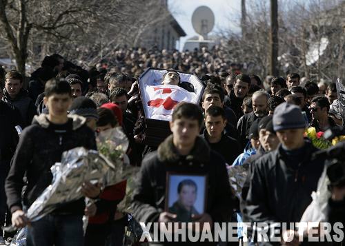 2月19日,人们护送着格鲁吉亚雪橇选手诺·库马里塔什威利的灵柩。当日,诺·库马里塔什威利的葬礼在他的家乡巴库里阿尼举行。2月12日,年仅21岁的库马里塔什威利在进行冬奥会雪橇训练时发生恶性碰撞事故,经抢救无效身亡。 新华社/路透