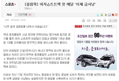 丢掉金牌,韩国输得无话可说,获得亚军的李恩星接受韩国记者采访时表示:“我们输得太容易了,以这样的方式丢掉金牌让我感觉非常失望,我不是想争辩什么,我只能说我感觉非常痛心。”谈到失利的具体原因时,李恩星直接说道:“我们让周洋太轻易的突围了,当周洋从后面冲上来的时候,前面的我国选手未能有效的对她进行阻挡”,“我们三名选手未能做到同呼吸共命运”李恩星暗示说。