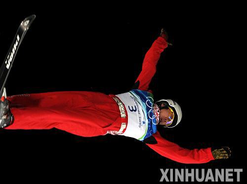 2月22日,中国选手贾宗洋在比赛中。当日,在温哥华冬奥会自由式滑雪男子空中技巧资格赛中,中国选手贾宗洋以242.52分列第一名,晋级决赛。新华社记者 申宏 摄