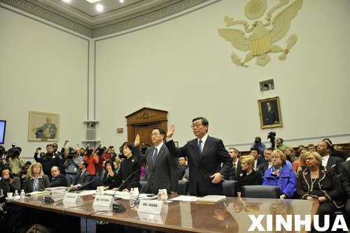 2月24日,在美国首都华盛顿国会众议院,丰田公司总裁丰田章男(前排中)出席听证会。当天,美国国会众议院监督和政府改革委员会就丰田召回事件举行听证会。