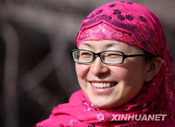 全国人大代表毕红珍在展示特意为出席十一届全国人大三次会议新做的民族服装(2月24日摄)。新华社记者陈建力、多蕾报道