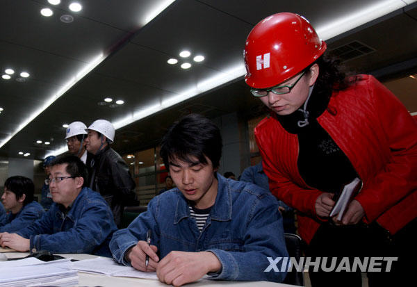全国人大代表毕红珍(右一)在华能平凉发电公司调研(2月25日摄)。新华社记者陈建力、多蕾报道