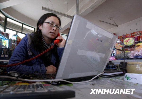 全国人大代表毕红珍在超市内接电话(2月24日摄)。她常在自己的超市内听取群众意见。新华社记者陈建力、多蕾报道