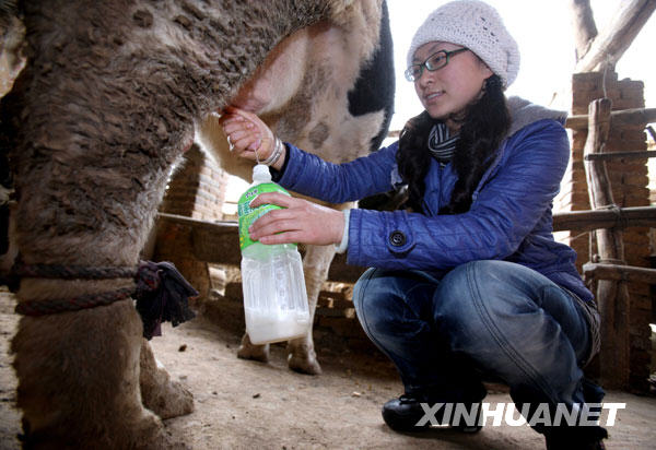 全国人大代表毕红珍在为自家奶牛挤奶(2月24日摄)。新华社记者陈建力、多蕾报道