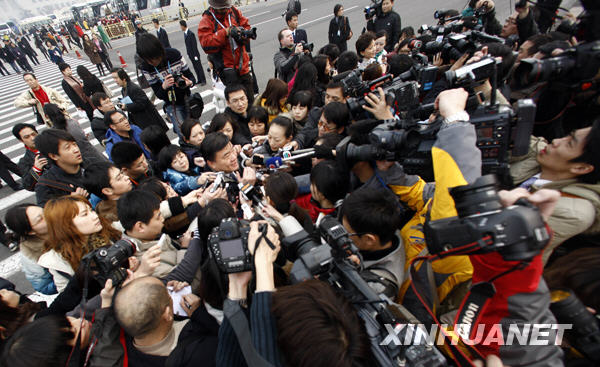 这是大会开幕前,记者们把全国政协委员、卫生部部长陈竺团团包围。新华社记者 费茂华 摄