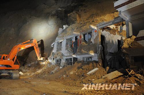 3月10日晚,救援人员在全力营救。 新华社记者陶明摄
