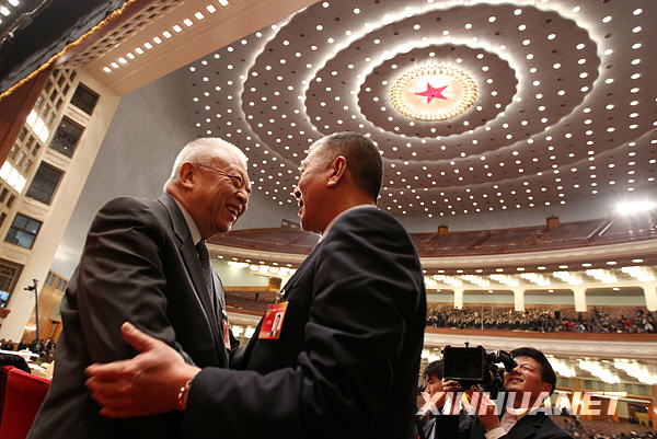 3月13日,中国人民政治协商会议第十一届全国委员会第三次会议增选何厚铧为政协第十一届全国委员会副主席。这是何厚铧走上主席台。新华社记者 李涛 摄