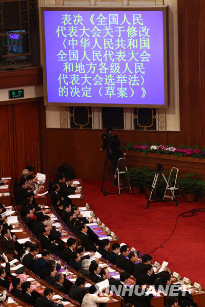 3月14日,第十一届全国人民代表大会第三次会议在北京人民大会堂举行闭幕会。 新华社记者 饶爱民 摄