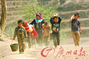 来回提水是翁达村的大人和孩子每天的头等大事。