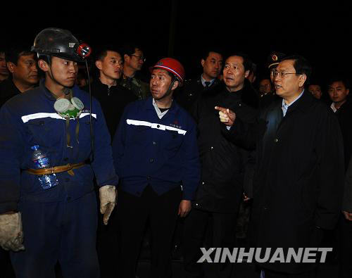 3月29日凌晨,张德江在王家岭矿事故现场指导抢险救援工作。新华社记者 燕雁 摄