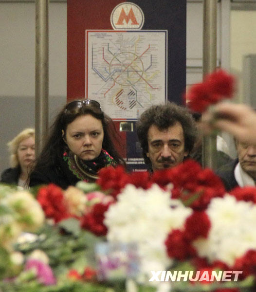 3月30日,在俄罗斯首都莫斯科曾发生爆炸的卢比扬卡地铁站内,一些市民为地铁爆炸案的遇难者默哀。新华社记者鲁金博摄