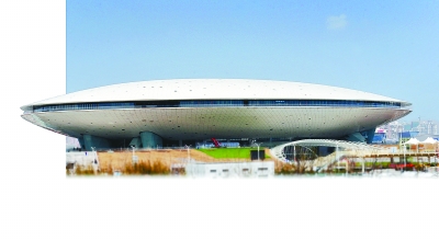 经过两年零三个月的建设施工,状若飞碟的上海世博文化中心3月31日正式竣工。至此,上海世博会的中国馆、主题馆、世博中心、文化中心、世博轴等“一轴四馆”五座永久性建筑全部建成 朱建国摄