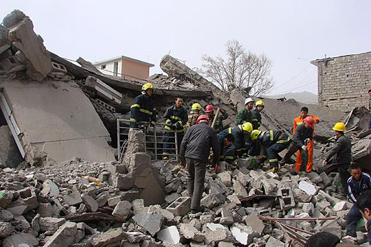 图:青海玉树震区现场抢险救援工作展开