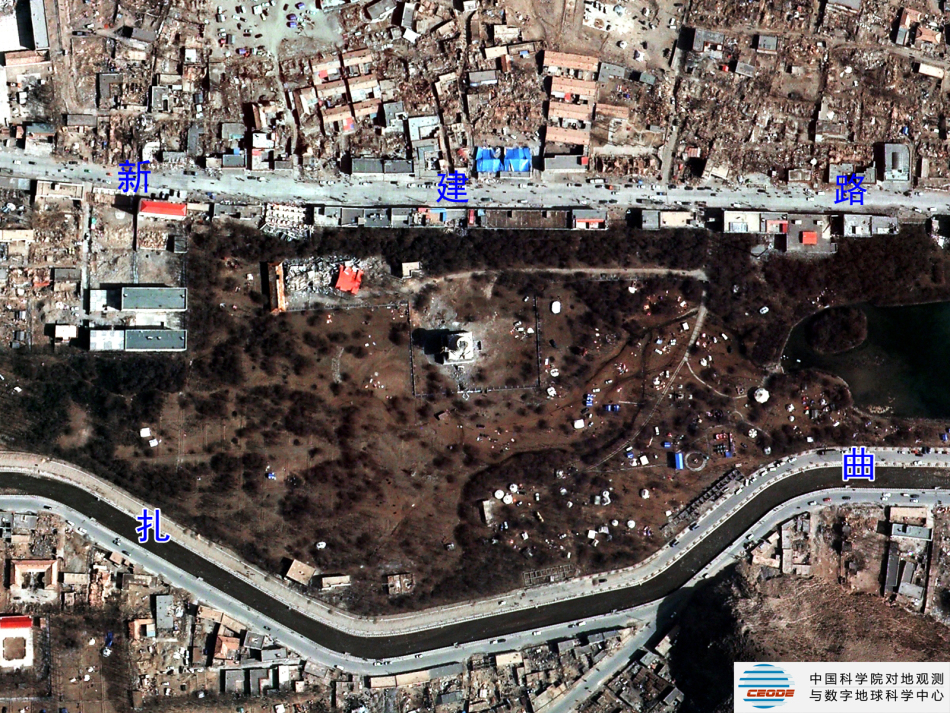 新浪科技讯 中科院对地观测中心今日最新公布了玉树地震灾区的航空遥感图像。中科院对地观测中心利用2010年4月16日获取的高分辨率航空遥感数据,提取出玉树州结古镇城区范围内地震破坏最严重或典型地区,使之与GoogleEarth中相应位置的震前遥感卫星数据进行对比,直观展现结古镇在此次地震中的受影响程度。