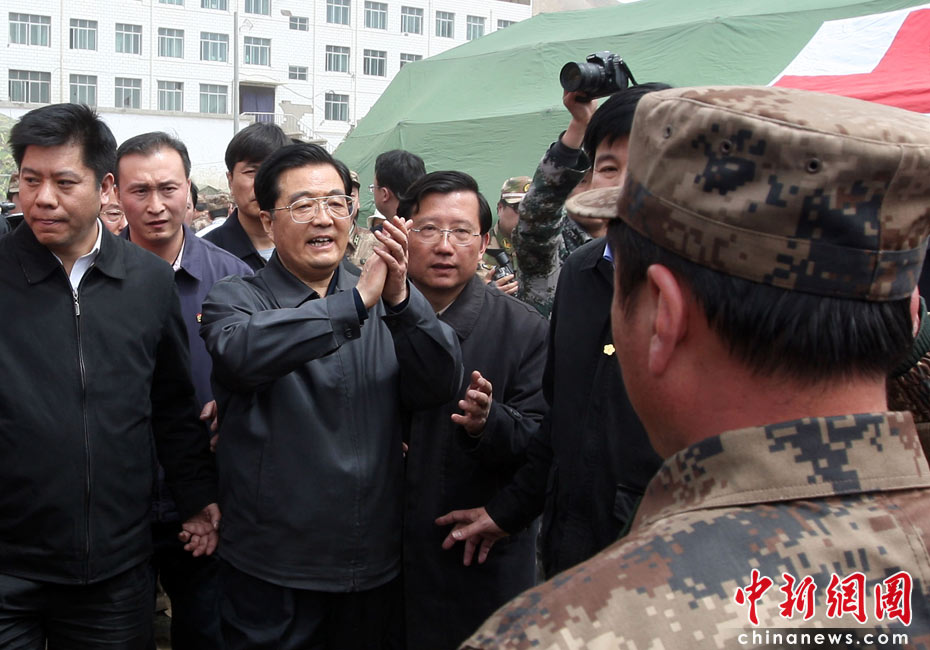 胡锦涛抵达玉树地震灾区看望受灾民众