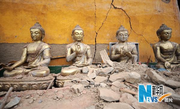 据青海省文物局通报,在玉树地震受灾区域中,众多文物受损严重,大量建筑倒塌,珍贵文物被埋。其中全国重点文物保护单位新寨嘉那嘛呢的佛塔、护法殿堂等附属建筑在地震中倒塌;省级文物保护单位结古寺有一座佛殿出现部分坍塌,受余震影响后结古寺基本倒塌,具体情况不详;省级文物保护单位禅古寺在地震中全部倒塌,一些寺院僧人有伤亡。 新华社记者 聂建江摄