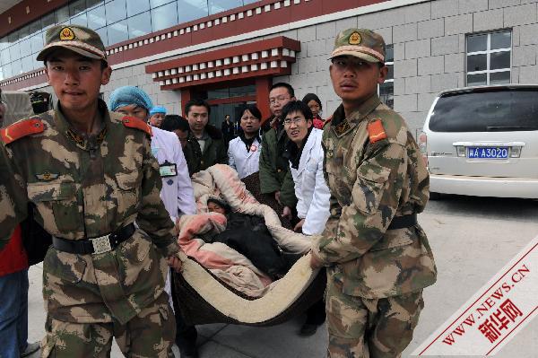 记者从青海玉树抗震救灾指挥部了解到,截至4月18日8时,已有1881名地震伤员从玉树灾区转运到省内和外省医疗机构救治。新华社记者何俊昌 摄