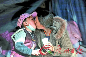 玉树灾区母亲用嘴给感冒女儿喂药(图)