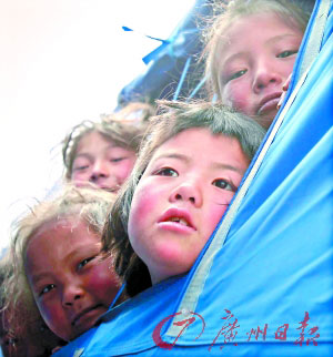 怀德儿童福利院,孩子在帐篷里通常不能自由出来活动,所以对外界充满好奇和渴望。 记者倪黎祥 摄