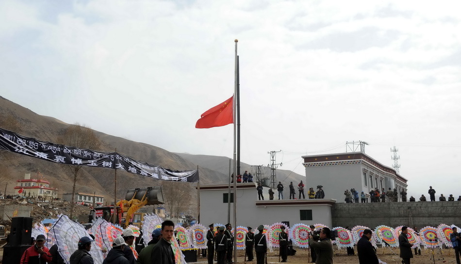 4月21日,青海玉树“4·14”地震灾区举行哀悼活动,沉痛悼念地震遇难同胞。