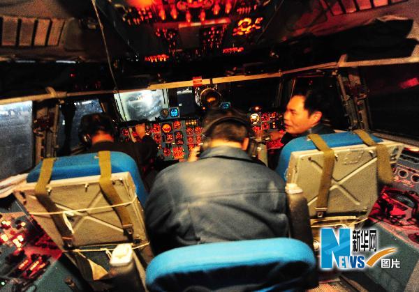 4月20日晚,机组人员操控专机在玉树机场安全降落。新华社发(沈玲 摄)