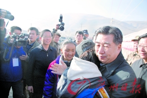 回良玉看望玉树灾区复课师生 拥抱安慰藏族学生