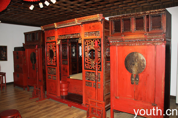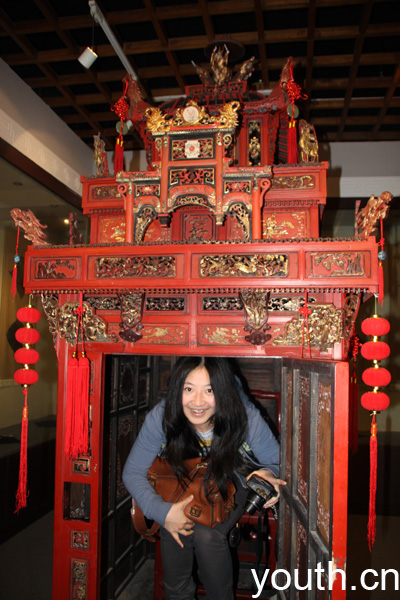 自古女子爱红妆,在十里红妆博物馆里,“花轿”、“闺房”让同行的女记者们着迷,争相坐进花轿当新娘,感受时代变迁,重温传统婚嫁文化。馆中通过子孙桶、缠足架、绣花桌、麻丝桶、花轿、百宝箱等旧时代女人日常生活里必不可少的大量器物,诠释了旧时代女人凄美的一生,勾画了旧中国浙东一带的女人从生到死的生命历程。十里红妆的热闹场面已成为历史,承传了千百年的妇女境况已彻底改变。