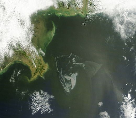 5月1日的强风带来双重打击,一方面导致海水波浪翻滚,妨碍浮油清理工作,另一方面又吹动浮油进一步逼近路易斯安那州沼泽地。美国宇航局卫星拍摄的照片清楚地展现了这一点。联邦政府和石油业组成的应急反应小组4月30日表示,现在已部署长度超过21.7万英尺(约合6.6142万米)的栏障,以保护那些生态易受破坏的地区。此外,加农炮也已投入使用,用震耳欲聋的炮声防止鸟类进入沿岸地区。