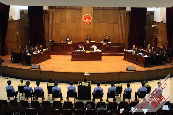 这是庭审现场(5月13日摄)。当日,重庆市司法局原局长文强及“三大金刚”涉黑案在重庆市高级人民法院二审开庭。一审被判处死刑的文强认为一审法院对一些犯罪事实认定有误、部分事实性质认定不准确,导致量刑过重,文强的辩护律师表示作全案上诉。法院预计此上诉案庭审时间将持续2-3天。新华社发