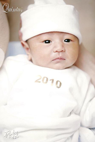 “明报”消息称,5月出生的Quintus样子趣致,耳垂长,很有福气。Quintus是拉丁文,有5月的意思。