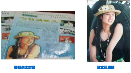 《法制月刊》代理人当庭否认自己刊登的封底女子是蒋文丽,并指原告出示的蒋文丽的照片与自己封底的照片只是很像,而并不完全相同,因此不能认定使用了蒋的照片。"不能因为用了古月(毛泽东的特型演员)的照片就认定是对毛泽东肖像的侵权"。《法制月刊》代理人还认为,即使封底用的真的是蒋文丽的照片,也不存在触犯人格、暴露隐私问题,原告所称误导读者之说,纯属主观臆断,没有事实根据。说到责任,《法制月刊》代理人认为该广告已经于2002年底停止刊发,杂志社也算是"停止了侵害,消除了影响"了,如果要赔偿,也应该由广告的受益人来承担,而与杂志社无关。