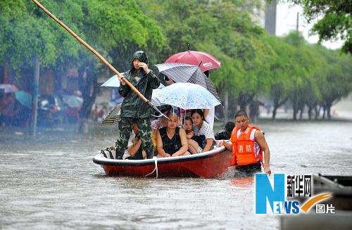 6月1日,来宾市消防官兵在转移被大水围困的群众。从5月31日晚开始,广西部分地区遭受特大暴雨袭击。截至6月1日9时,来宾市市区出现335.6毫米的特大暴雨,内涝严重。新华社记者 李斌 摄
