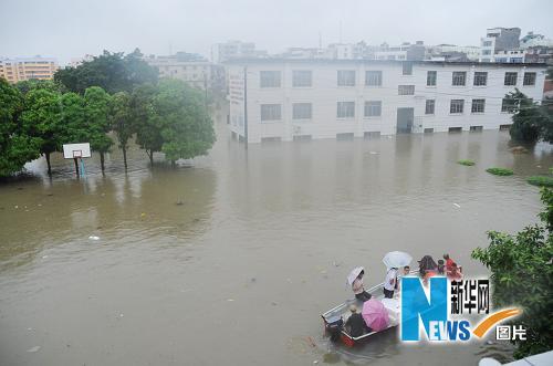 6月1日,广西来宾市实验中学被大水围困。新华社发(卢哲 摄)