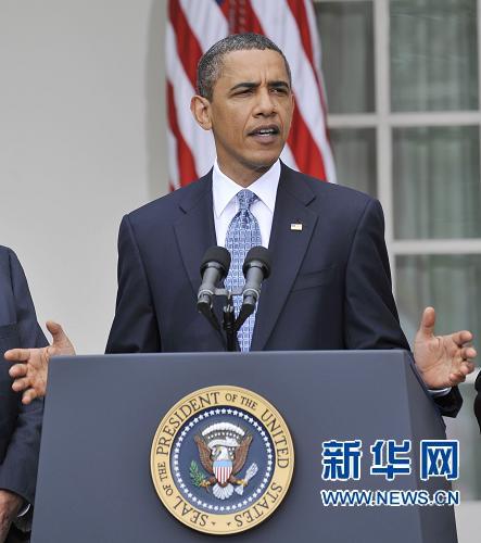 6月1日,在美国首都华盛顿白宫玫瑰园,美国总统奥巴马就墨西哥湾原油泄漏事件发表申明。新华社记者 张军 摄