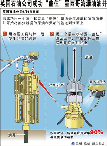 图表:英国石油公司成功“盖住”墨西哥湾漏油油井 新华社发