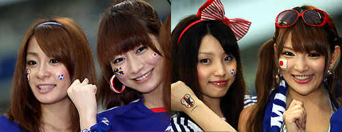 日本队备战世界杯女球迷总动员 艳惊四座(组图)