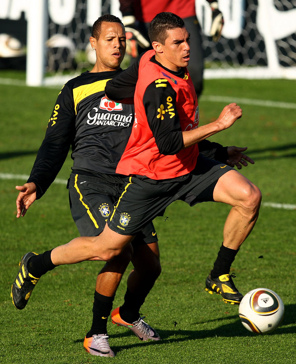 当地时间2010年6月6日,巴西队在南非的约翰内斯堡进行集训,卡卡在训练中“玩”的很尽兴。