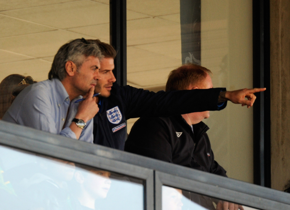 北京时间2010年6月5日20:30分,美国队队在与澳大利亚队在南非进行了一场友谊赛。双方尽遣主力出场,都在进一步磨合主力阵容,小贝也出现在看台上,他作为英格兰的球探来侦察小组同组对手美国队的情况。
