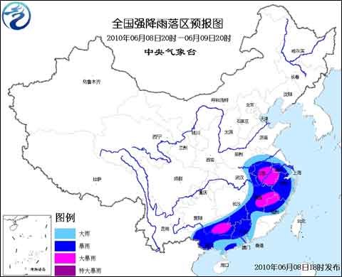 8日,中国持续大范围的降水天气过程,尤其是南方受暴雨影响的地区将进一步扩大。据中央气象台预报,未来三天,湖北、安徽、福建、江西、湖南、广西、海南,以及河南、江苏、浙江、广东等地部分地区将有大到暴雨,局地有大暴雨。