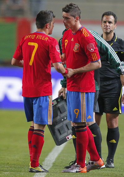 对波兰的比赛,托雷斯还在替补席上等待了一个多小时,最后,博斯克终于决定将他派遣上场,托雷斯上场时,获得了全场球迷热烈的欢呼声。托雷斯换下的是比利亚,博斯克似乎有意不让他们同时上场,因为老帅不希望看到球队的控球打法遭遇阻碍。进球需要很多人的努力,但最后只能由一人来完成临门一脚。